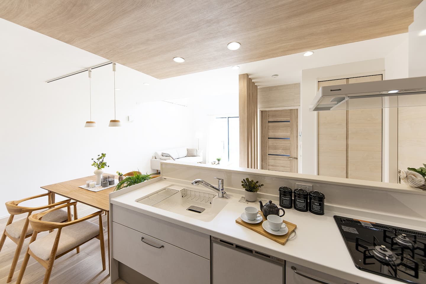 清潔感溢れる広々とした素敵なキッチンスペースは、「機能性」と「開放感」で、楽しい時間をもっと沢山。家族の顔を見ながら、大切な友人との会話を楽しみながら、食事の時間を愉しむ幸福。この家でならもっと大事な時間が積み重ねられる。